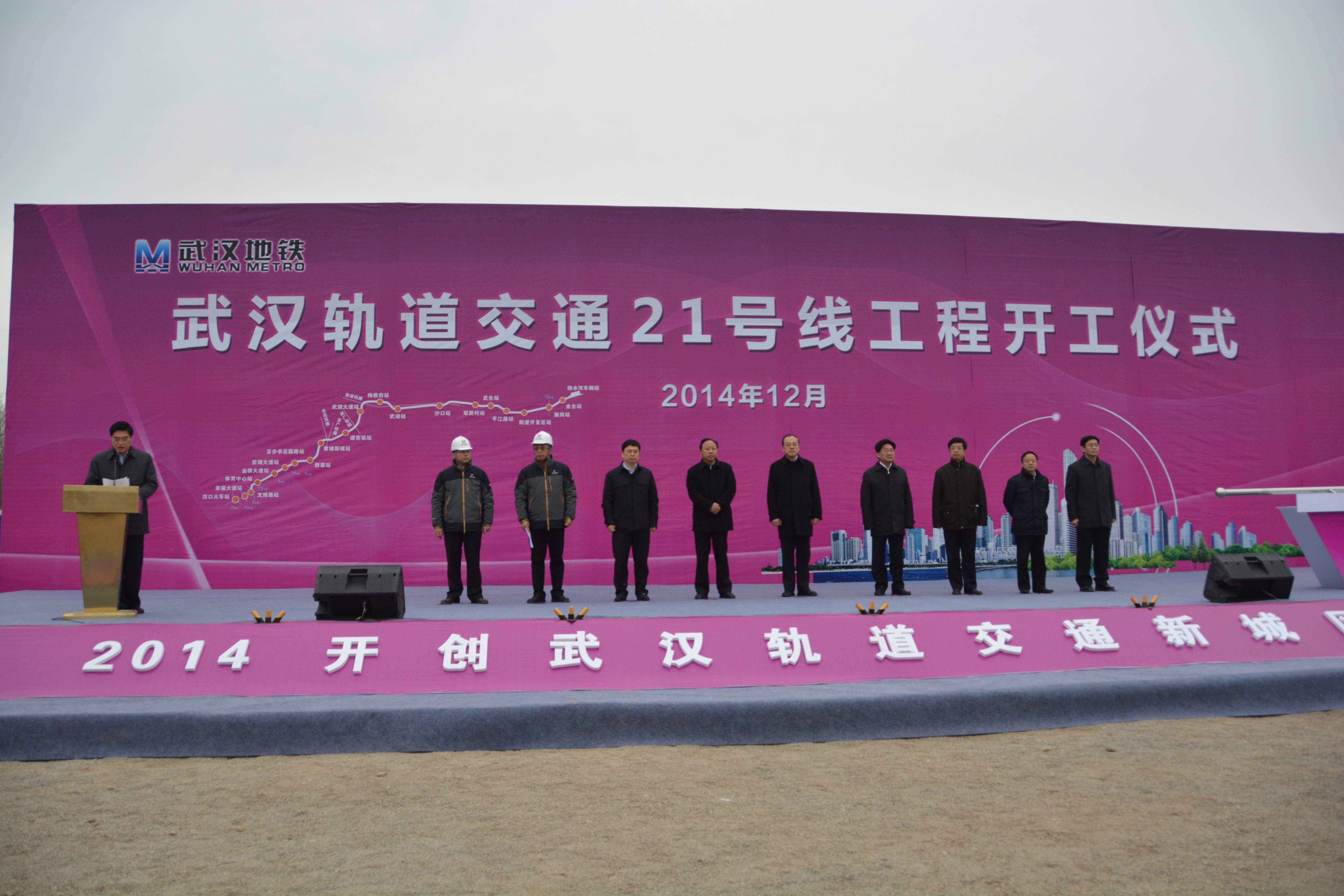 2014年12月27日上午,武漢軌道交通21號線在新洲區(qū)施崗正式開工,省委常委、市委書記阮成發(fā),市政協(xié)主席吳超,常務副市長賈耀斌、新洲區(qū)委書記胡亞波等領(lǐng)導出席開工儀式,參加開工儀式的還有我公司總經(jīng)理王智高及部分職工。