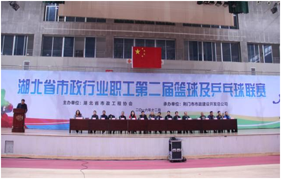 12月12日上午9點,由湖北省市政工程協(xié)會主辦、荊門市市政建設(shè)開發(fā)總公司承辦的全省市政行業(yè)職工第二屆籃球聯(lián)賽在荊門市體育文化中心開幕。省協(xié)會秘書長趙亞玲主持開幕式。比賽組委會有關(guān)人員、運動員、裁判員及觀眾共200余人參加開幕式。漢陽市政副總經(jīng)理、鐘鑫市政總經(jīng)理方紫微親自帶隊參加了本次活動。