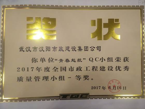 6月19日—21日,中國市政工程協(xié)會舉辦的2017年度全國市政工程優(yōu)秀QC小組成果發(fā)布總結(jié)表彰大會在四川成都舉行,經(jīng)過近三個月的報名與比賽、層層篩選和精中選優(yōu)后,來自武漢市漢陽市政建設(shè)集團公司的“青春起航”和“新起點”的《鎖口鋼管樁-新型基坑圍護結(jié)構(gòu)》和《提高SMW工法樁型鋼插入合格率》兩個QC小成果從全國23個省市的470個QC成果中脫穎而出,分別喜獲優(yōu)秀質(zhì)量管理小組一等獎和先進質(zhì)量管理小組的稱號。