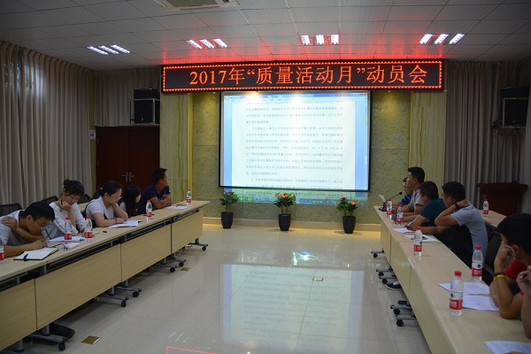 根據(jù)集團(tuán)公司“質(zhì)量活動(dòng)月”方案的精神和內(nèi)容,為進(jìn)一步加強(qiáng)鐘鑫公司質(zhì)量品質(zhì),切實(shí)組織開(kāi)展好2017年“質(zhì)量月”活動(dòng),努力在全公司營(yíng)造“重視質(zhì)量、追求質(zhì)量、崇尚質(zhì)量、關(guān)心質(zhì)量”的氛圍,廣泛開(kāi)展質(zhì)量安全宣傳活動(dòng),優(yōu)化質(zhì)量發(fā)展環(huán)境。鐘鑫公司2017年度“質(zhì)量活動(dòng)月”活動(dòng)動(dòng)員會(huì)于2017年9月8日下午17時(shí)在公司一號(hào)會(huì)議室順利召開(kāi)。鐘鑫公司總經(jīng)理涂軼銘,副總經(jīng)理徐浩,各項(xiàng)目經(jīng)理等共30余人參加本次動(dòng)員會(huì)。會(huì)議由公司質(zhì)安部部長(zhǎng)楊潔主持。