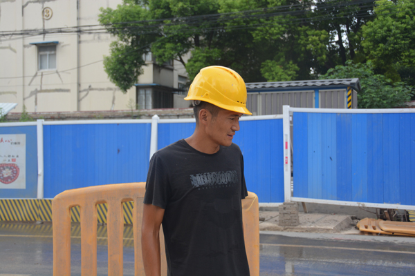 初次見面,徐軍濤害羞且寡言,目光所及都是施工作業(yè),他的專注會讓人覺得走近拍攝是對他的一種打擾。清晨亮起的微光仿佛是一天高強度工作開始的訊號,從訊號發(fā)出到進入奮戰(zhàn)狀態(tài)之間無縫銜接。夏季武漢涼爽的早晨到9點就結(jié)束了。烈日炙烤下的施工現(xiàn)場讓人不禁感嘆時間過得真慢啊,真想一眨眼的功夫這暑氣便能褪去。晴空萬里,天上沒有一絲云彩,太陽把地面烤得滾燙。一陣熱風(fēng)刮來,從地上卷起一股熱浪使人感到陣陣窒息。雜草抵擋不住太陽的曝曬,葉子都卷成了細(xì)條,但徐軍濤卻像沒有感覺到這酷暑似的繼續(xù)工作。