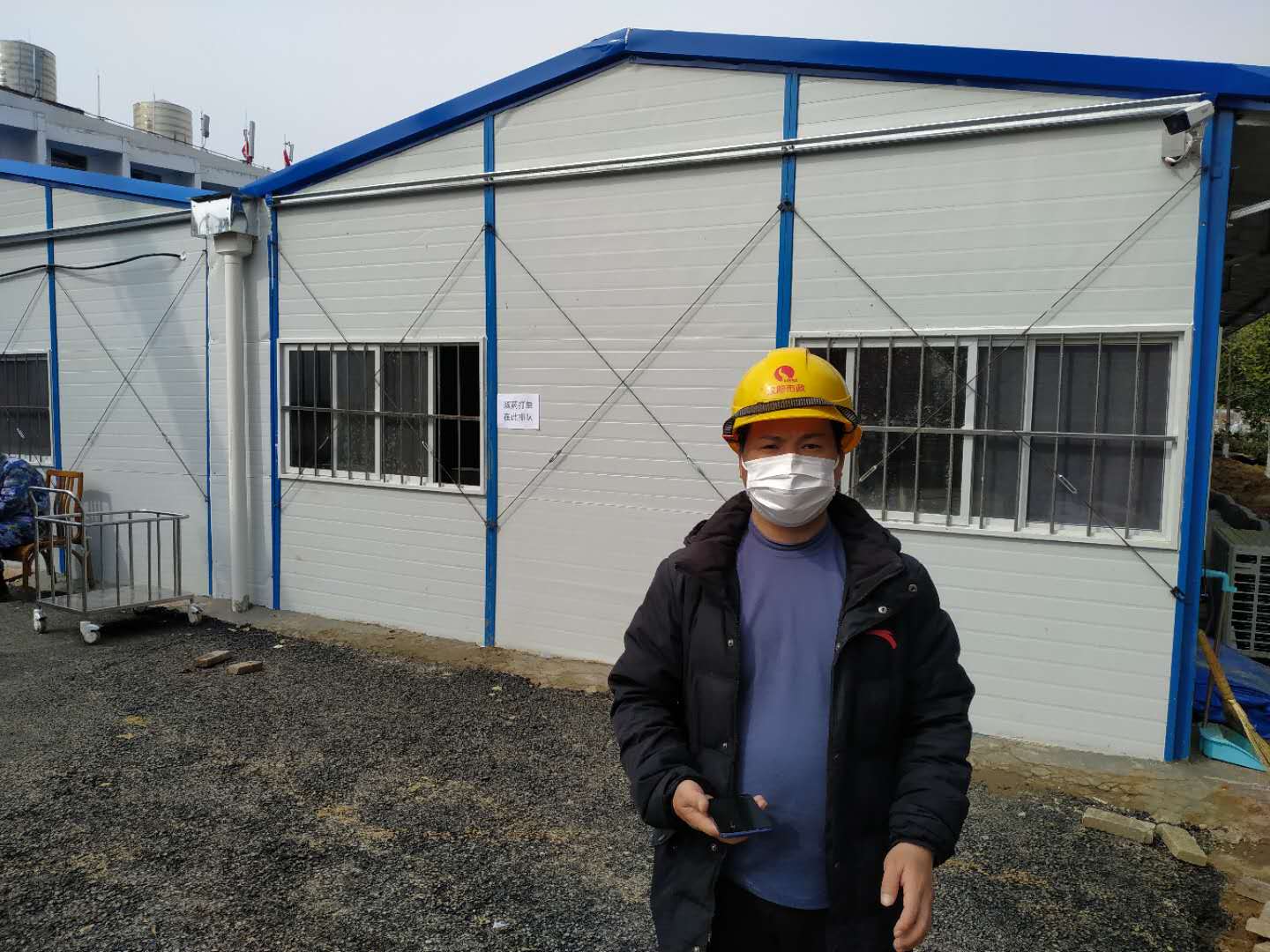 “最讓我難忘的就是在火神山,同伴們團(tuán)結(jié)一心、眾志成城,沒(méi)有情緒,不發(fā)牢騷,有什么任務(wù)都是第一時(shí)間馬上完成,有什么困難大家都積極幫忙?!痹谶@樣的氛圍中,周江雄感受到了集體擰成一捆繩的力量,他在現(xiàn)場(chǎng)負(fù)責(zé)施工以及聯(lián)系材料,每天只休四、五個(gè)小時(shí),起床的第一件事就是詢問(wèn)工程進(jìn)度,然后進(jìn)駐施工現(xiàn)場(chǎng)。連續(xù)的奮戰(zhàn)使他十分疲憊,2月7日的一場(chǎng)雨打斷了他的抗“疫”征程,在雨中堅(jiān)持施工了一天的他,沒(méi)能撐住身體,感到身體發(fā)軟后無(wú)法再繼續(xù)奮戰(zhàn),回家休息后的他依然十分牽掛現(xiàn)場(chǎng)情況,當(dāng)身體慢慢好轉(zhuǎn),他又選擇繼續(xù)向前,然而新洲更加嚴(yán)格的管控措施阻擋了他前進(jìn)的腳步,“沒(méi)能繼續(xù)和同事肩并肩戰(zhàn)斗,我有些遺憾,但我的心一直在他們身邊,與他們戰(zhàn)斗,繼續(xù)加油,完成使命”,這是他沒(méi)能在同事身邊,發(fā)出的最振奮的鼓舞。
