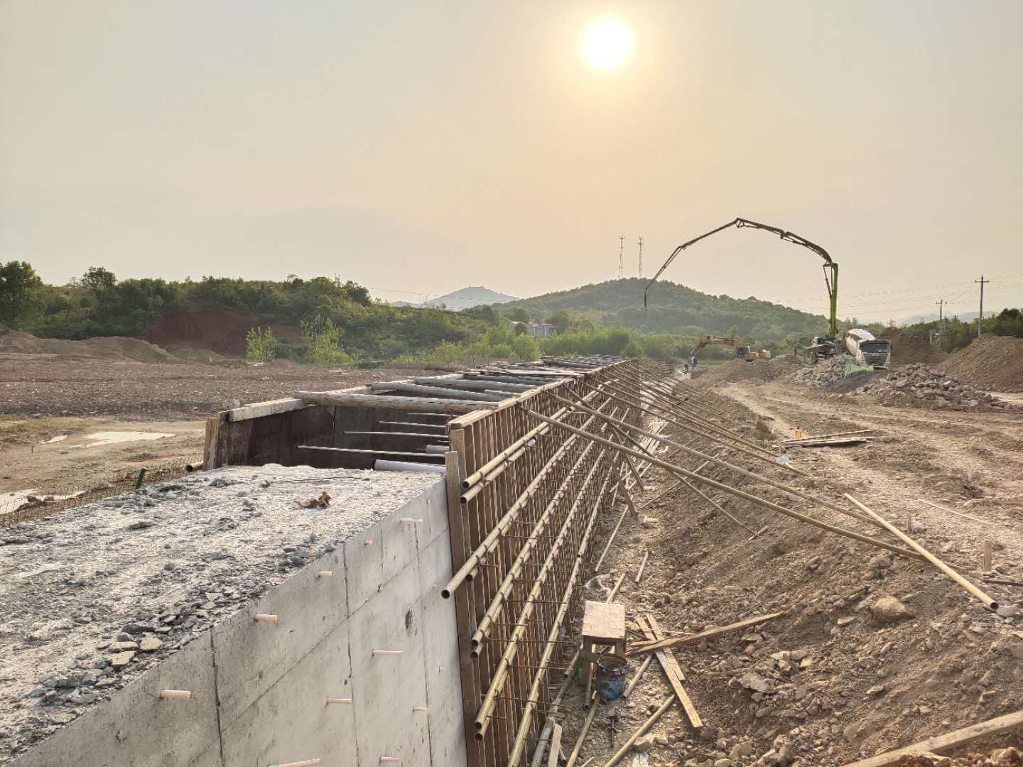 截止1月底,擋土墻施工完成300米,累計(jì)完成27%;雨水管道完成300米,累計(jì)完成27%;挖方完成6.6萬(wàn)方,累計(jì)完成63.2%;填方完成4萬(wàn)方,累計(jì)完成93.7%。受疫情影響,2個(gè)月處于停滯狀態(tài)。為保障項(xiàng)目安全有序復(fù)工,盡快把失去的工期“搶”回來(lái),該項(xiàng)目部第一時(shí)間了解當(dāng)?shù)貜?fù)工復(fù)產(chǎn)要求以及尋求武漢政策支持,分期分批進(jìn)駐項(xiàng)目現(xiàn)場(chǎng)。嚴(yán)格按照疫情防控方案落實(shí)各項(xiàng)工作,全體員工租住當(dāng)?shù)鼐用衩穹?,一棟兩層,分別作為會(huì)議室和住宿,按照一人一間房安排住宿;項(xiàng)目現(xiàn)場(chǎng)通過(guò)微信群、宣傳標(biāo)語(yǔ)和現(xiàn)場(chǎng)展板等方式積極開(kāi)展宣傳,施工現(xiàn)場(chǎng)采取了封閉式管理、實(shí)行全員戴口罩,提前儲(chǔ)備了口罩、護(hù)目鏡、消毒水、溫度計(jì)等防疫物資,保障項(xiàng)目現(xiàn)場(chǎng)防疫物資不中斷;每日為項(xiàng)目人員測(cè)量體溫、入場(chǎng)檢測(cè)實(shí)名登記、進(jìn)入項(xiàng)目車輛及人員定時(shí)消毒和分批就餐等手段切實(shí)做好施工期間防疫工作。確保了防疫生產(chǎn)“兩不誤”。整個(gè)項(xiàng)目部團(tuán)結(jié)一心,鼓足干勁,奔著共同目標(biāo)毫不松懈,挑燈夜戰(zhàn)趕進(jìn)度,爭(zhēng)分奪秒搶工期。通過(guò)加大人、材、機(jī)的投入、增加斷面等多種方式加快施工,截止4月16日,擋土墻完成施工220米,累計(jì)完成520米,完成47.27%;截洪溝溝槽開(kāi)挖150米,混凝土澆筑100米,完成9%。工程進(jìn)度嚴(yán)格按總進(jìn)度計(jì)劃有序進(jìn)行。