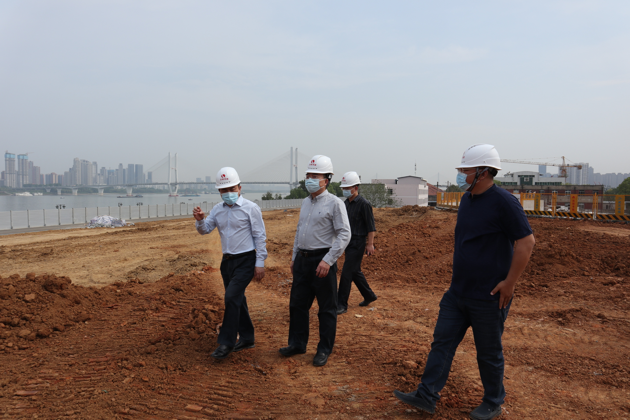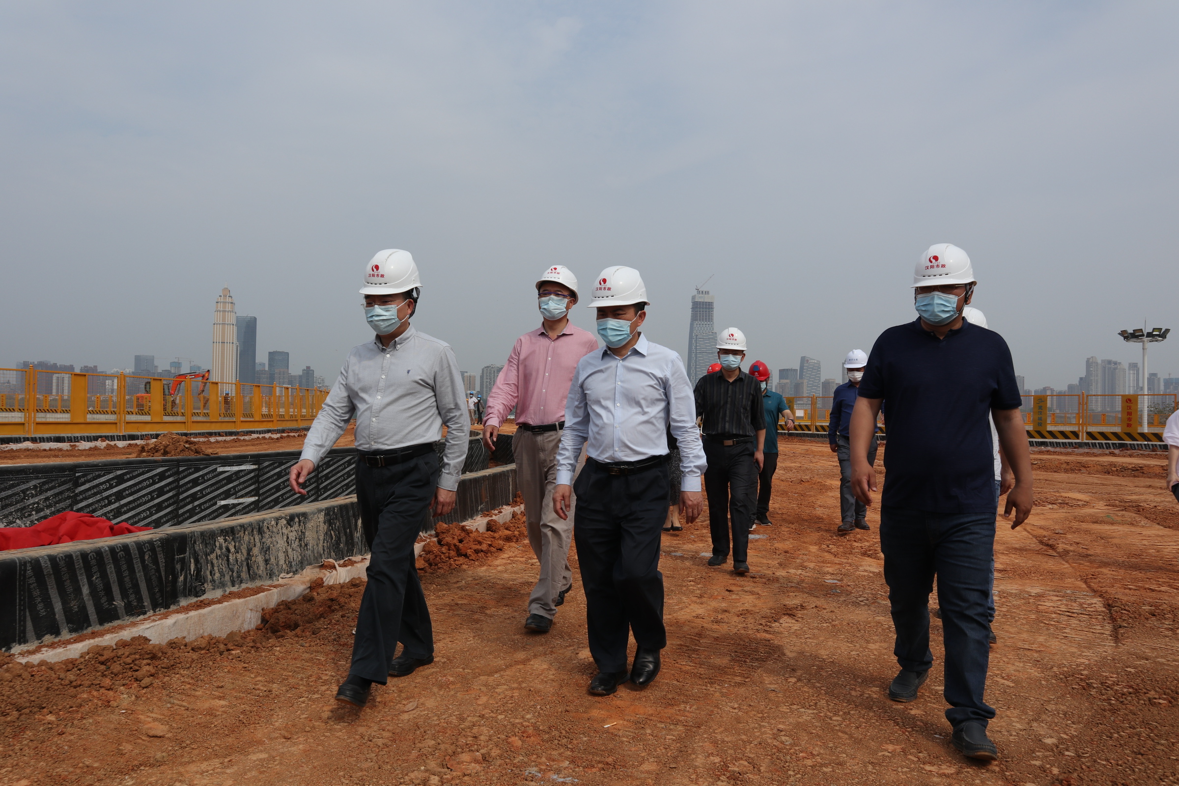 在項目建設現(xiàn)場,傅繼成副廳長一行認真查看了項目現(xiàn)場施工進度,并聽取了項目現(xiàn)場負責人關于月亮灣城市陽臺項目進度的情況匯報,傅繼成充分肯定了漢陽市政集團在為項目復工復產(chǎn)推進方面做出的工作,同時強調(diào)月亮灣城市陽臺項目作為市重點項目,要在科學安全的前提下,結合實際,突出重點、狠抓落實,高質(zhì)、高效的完成剩下的建設任務,打贏這場復工復產(chǎn)攻堅戰(zhàn)。