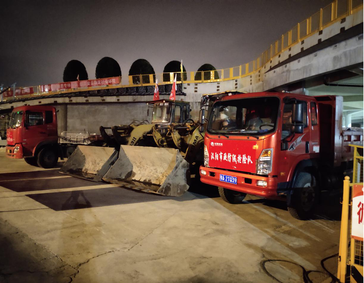 韓偉一行首先查看了長江的汛情和月亮灣項(xiàng)目部的防汛準(zhǔn)備工作。月亮灣項(xiàng)目地處臨江區(qū)域,屬月亮灣險(xiǎn)灘,面臨著防汛搶險(xiǎn)的嚴(yán)峻考驗(yàn)。因此,在汛情前期,項(xiàng)目部就做好充分準(zhǔn)備,積極籌備鏟車2臺(tái),拖車1臺(tái),挖機(jī)2臺(tái)及10余類防汛器械,確保防汛物資充足;并確立了項(xiàng)目領(lǐng)導(dǎo)帶班值守巡查制度,組織25人成立應(yīng)急搶險(xiǎn)小組,24小時(shí)輪流駐守在防汛應(yīng)急值守點(diǎn)。同時(shí),項(xiàng)目部還暫?,F(xiàn)場部分基坑開挖和樁基施工工序,在保證不影響施工進(jìn)度的情況下,以萬全的準(zhǔn)備應(yīng)對(duì)汛期的到來。韓偉檢查了一工區(qū)的防汛應(yīng)急值守點(diǎn),查看了倉庫中的各類防汛物資及設(shè)備,了解了項(xiàng)目上的值班制度、值守人員巡視職責(zé)、搶險(xiǎn)應(yīng)急方案等。