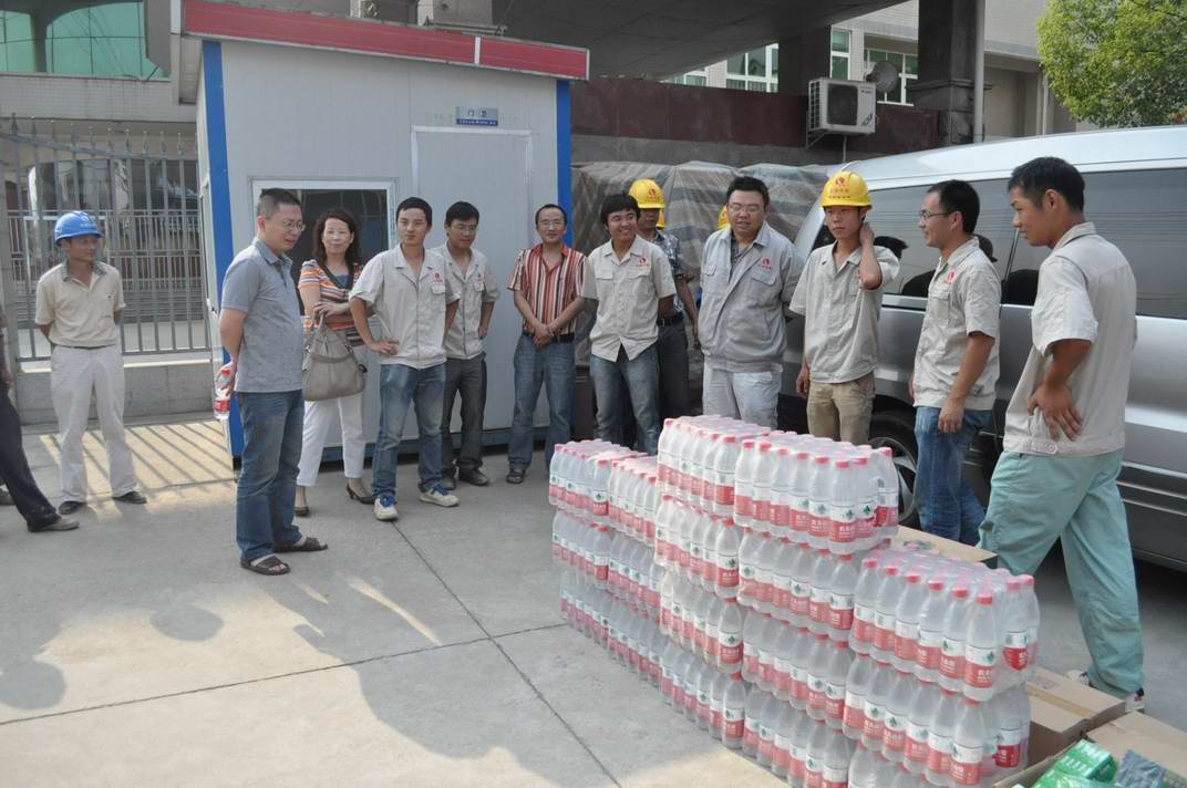 時(shí)值夏季高溫之際,2012年6月13日,鐘鑫公司黨支部書記王繁率公司各職能部門負(fù)責(zé)人赴各在建工地,代表公司向不畏高溫、始終堅(jiān)守在施工一線辛勤工作的員工表示親切的慰問。