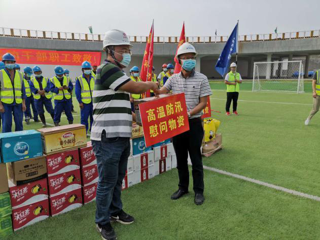 7月20日下午,武漢市城市建設(shè)投資開發(fā)集團(tuán)有限公司副總經(jīng)理盛華、漢陽市政建設(shè)集團(tuán)有限公司常務(wù)副總經(jīng)理王智高一行赴月亮灣城市陽臺項目施工現(xiàn)場進(jìn)行高溫慰問,鐘鑫公司總經(jīng)理盧永紅陪同。盛華一行看望并慰問了由鐵投公司牽頭組建的防汛搶險突擊隊25名隊員,并為他們送去了純凈水、面包、牛奶、王老吉、雨衣及雨傘等數(shù)類高溫防汛慰問物資。盛華對炎炎烈日下堅守在防汛抗洪一線的25名防汛突擊隊隊員表達(dá)了肯定及感謝,并叮囑防汛人員要繼續(xù)發(fā)揚吃苦耐勞、積極奉獻(xiàn)的精神,嚴(yán)格落實防汛排漬工作,打好防汛抗洪攻堅戰(zhàn)。