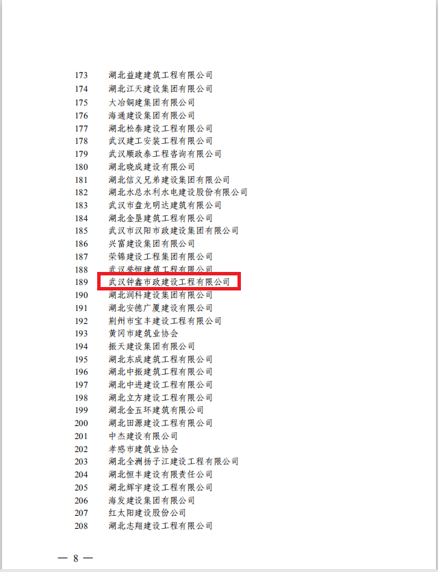 2020年8月24日,湖北省建筑業(yè)協(xié)會發(fā)布《關(guān)于表揚(yáng)抗擊新冠肺炎疫情表現(xiàn)突出的先進(jìn)集體和個人的通報》(鄂建協(xié)202042號),鐘鑫公司榮獲抗擊新冠肺炎疫情表現(xiàn)突出的先進(jìn)集體稱號;鐘鑫公司林光洪、魏偉、張平、李衛(wèi)民、宋建國榮獲抗擊新冠肺炎疫情表現(xiàn)突出的先進(jìn)個人稱號。