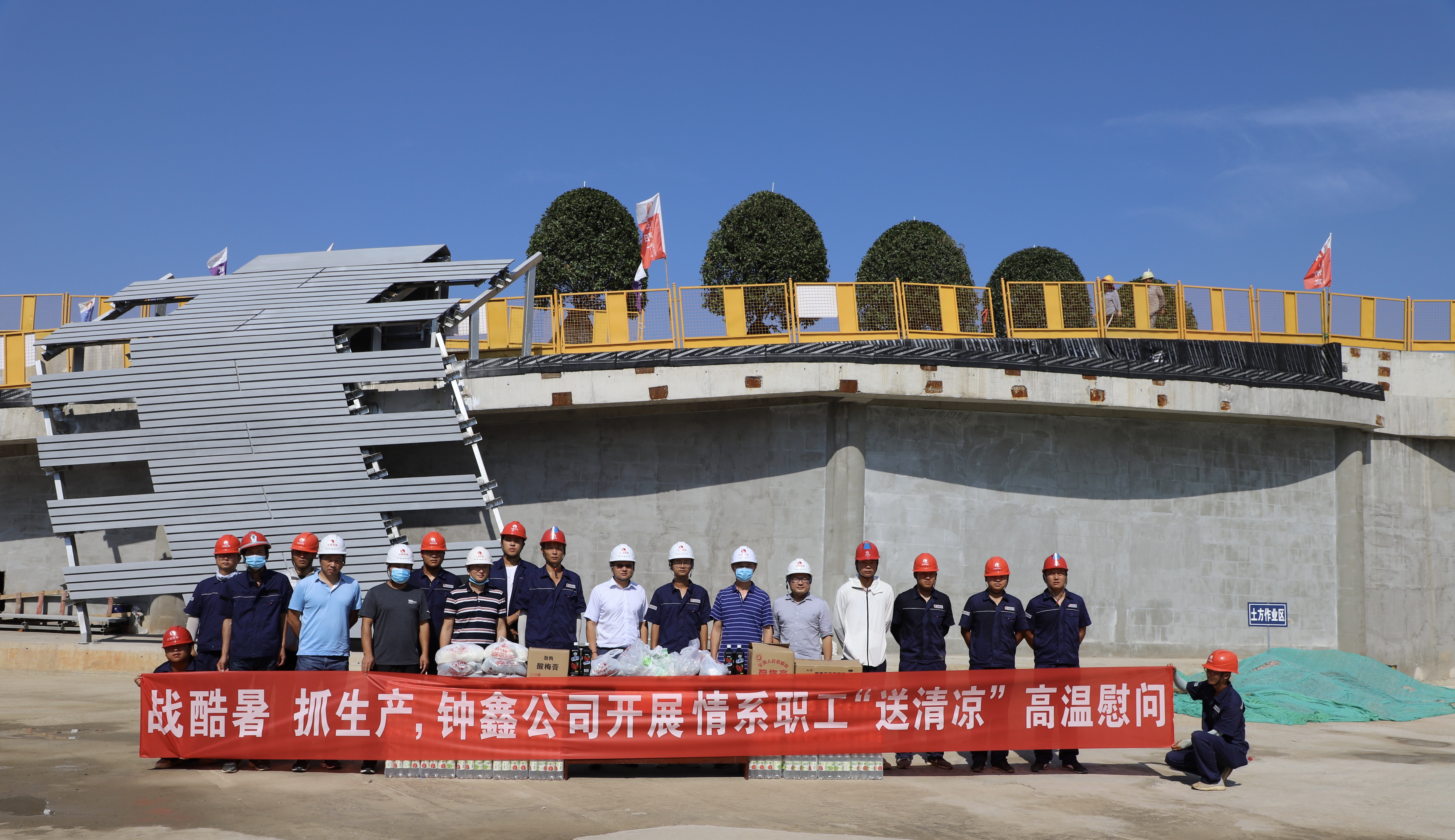 防汛工作剛結(jié)束,武漢又進(jìn)入持續(xù)高溫模式。近期,武漢氣溫連日高達(dá)37℃以上,但廣大一線施工人員仍夜以繼日?qǐng)?jiān)守崗位,爭(zhēng)分奪秒搶奪工期,全力以赴保障生產(chǎn)。8月18日上午,鐘鑫公司黨支部書記、董事長(zhǎng)陳俊俊帶隊(duì),赴月亮灣城市陽(yáng)臺(tái)項(xiàng)目、地鐵5號(hào)線第7標(biāo)段土建工程項(xiàng)目、地鐵19號(hào)線第5標(biāo)段土建工程項(xiàng)目等六個(gè)項(xiàng)目,關(guān)心慰問(wèn)堅(jiān)守崗位的一線施工人員,為他們送去一份清涼。