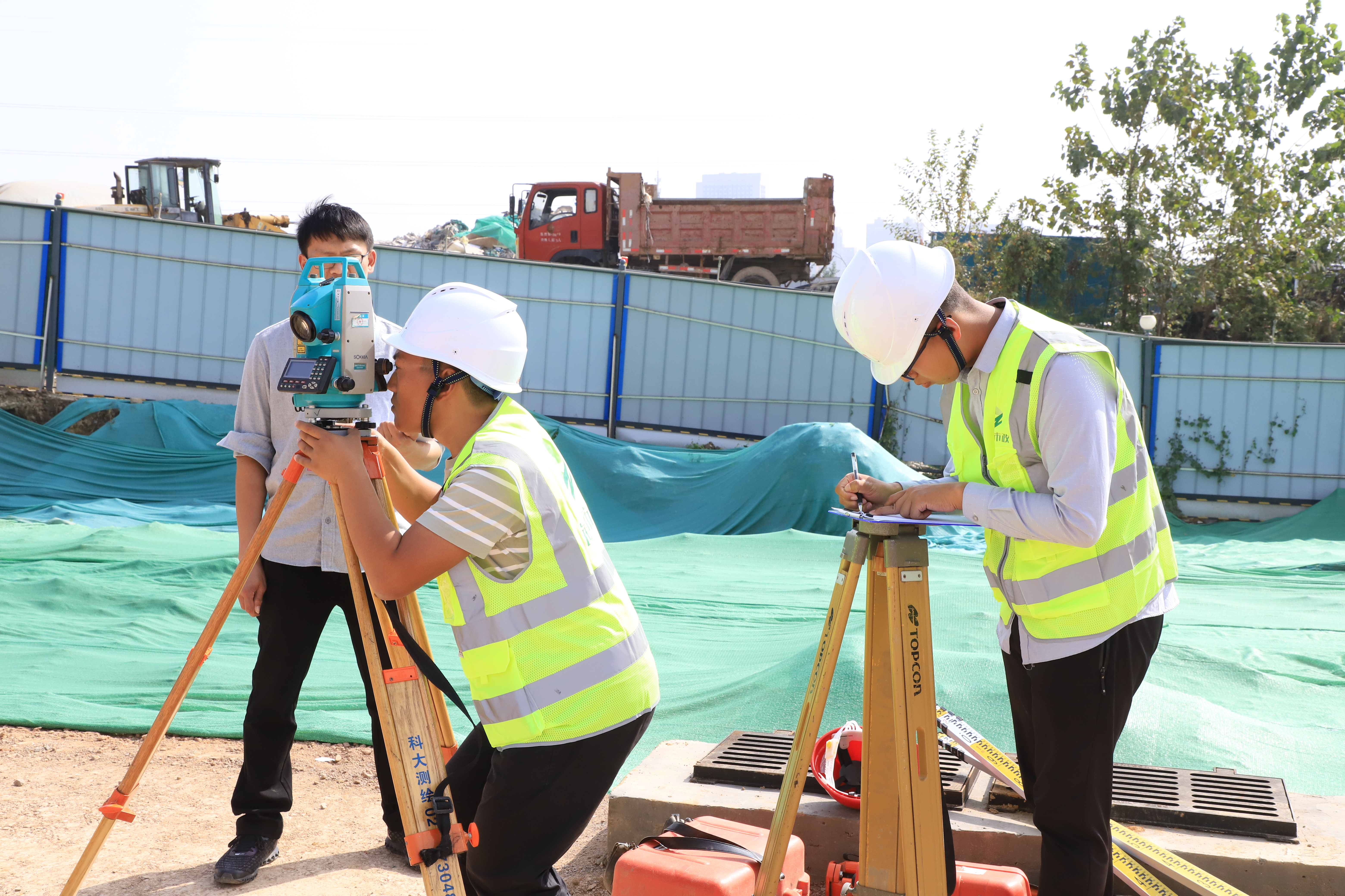 “這里,這里,快一點(diǎn)!棱鏡已經(jīng)擺好了”,“我來測,你快去下一個點(diǎn)”在晴川大道項(xiàng)目現(xiàn)場,“建元杯”測量技能比賽在緊張而火熱地進(jìn)行中。