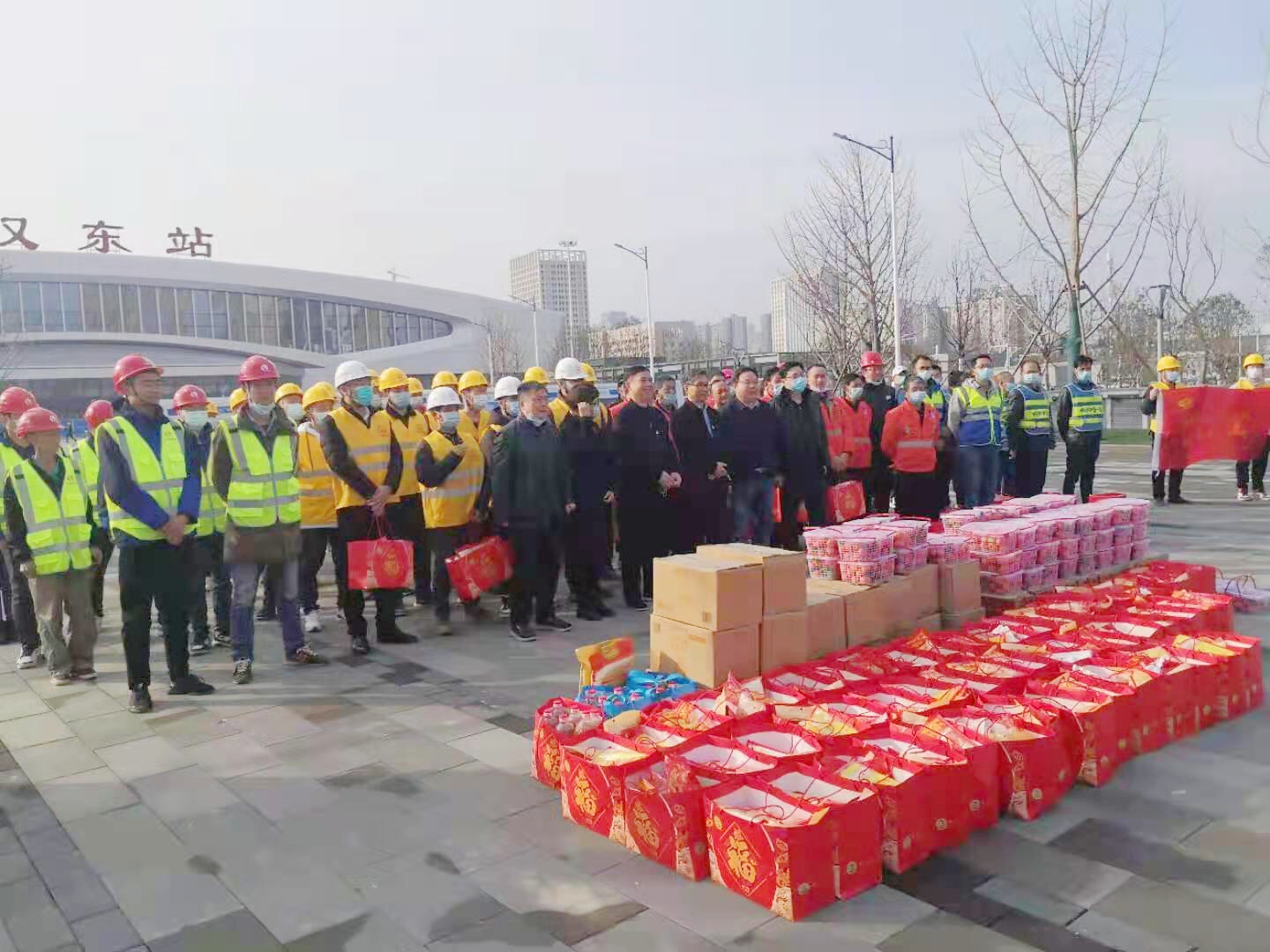 明銘肯定了各參建單位對武漢東站及配套道路工程建設(shè)項目的全力支持,并對春節(jié)期間留漢人員一如既往的辛勤堅守表達感謝。同時,他也對各參建單位提出相關(guān)要求,一定要切實做好春節(jié)期間留漢員工的疫情防控和生活物資保障工作,讓每個留漢人員都能感受到“家”的溫暖。最后,明銘一行向所有的留漢人員派發(fā)了春節(jié)慰問禮包,并表達了節(jié)日的祝福,現(xiàn)場氣氛活躍,其樂融融。留漢人員表示,感謝領(lǐng)導(dǎo)的關(guān)懷,即使在異鄉(xiāng),也感受到了家鄉(xiāng)的親切,只要國家、政府有需要,建筑人堅決執(zhí)行,義不容辭。