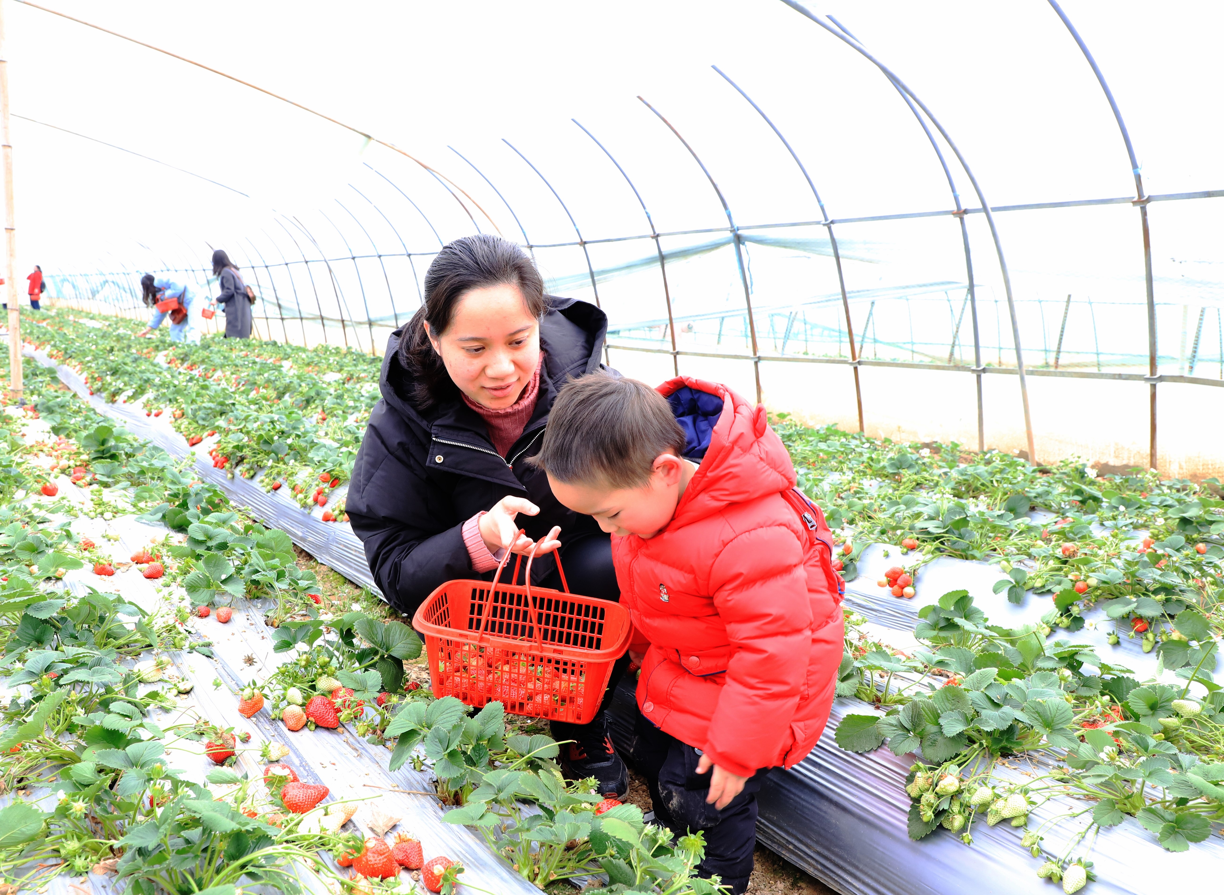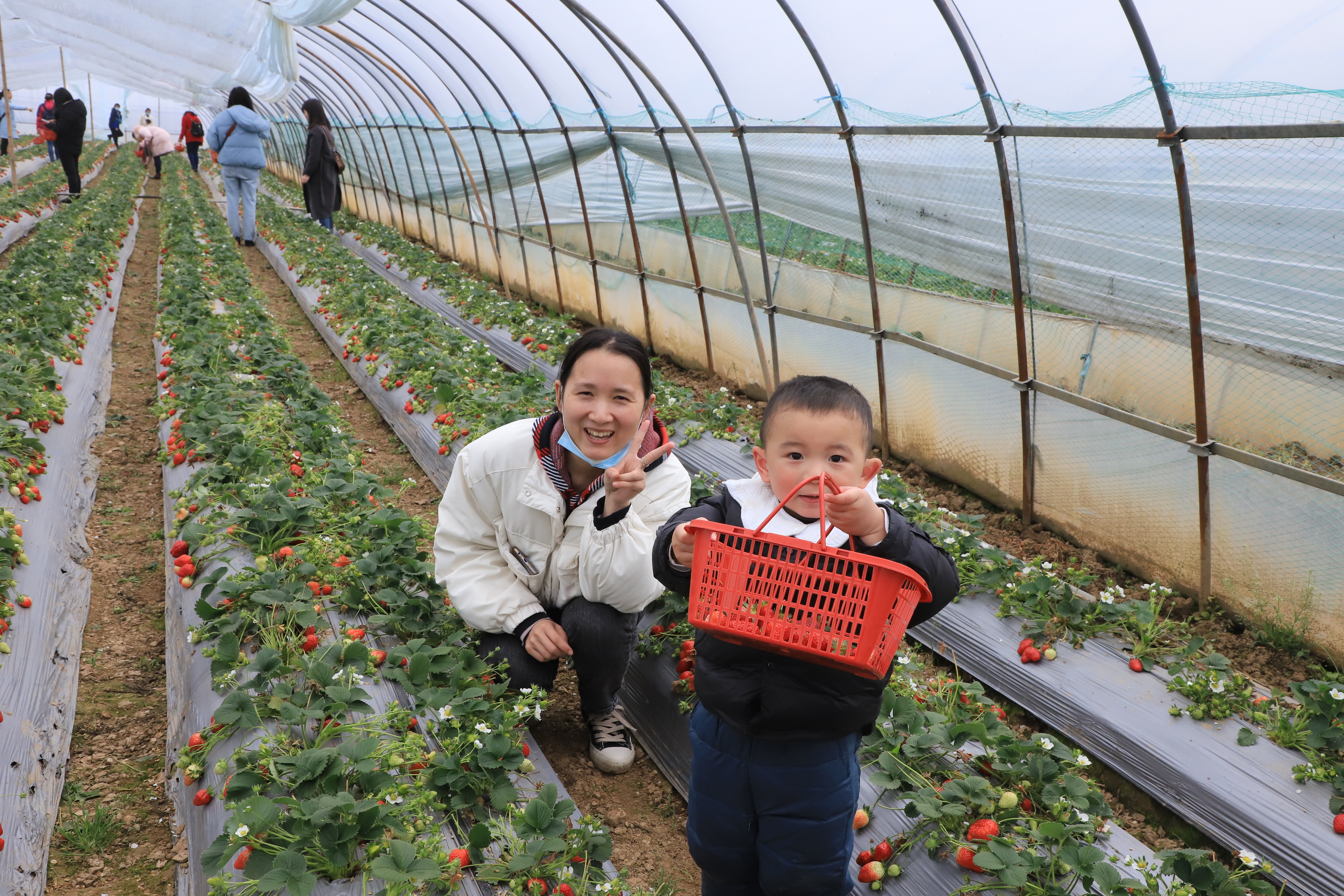 觀賞完油菜花后,大家又一起去農(nóng)莊體驗(yàn)采摘草莓的樂趣,品嘗草莓的甜美清香,鱗次櫛比的大棚里傳來大人小孩此起彼伏的歡笑聲,盡享快樂親子時(shí)光。