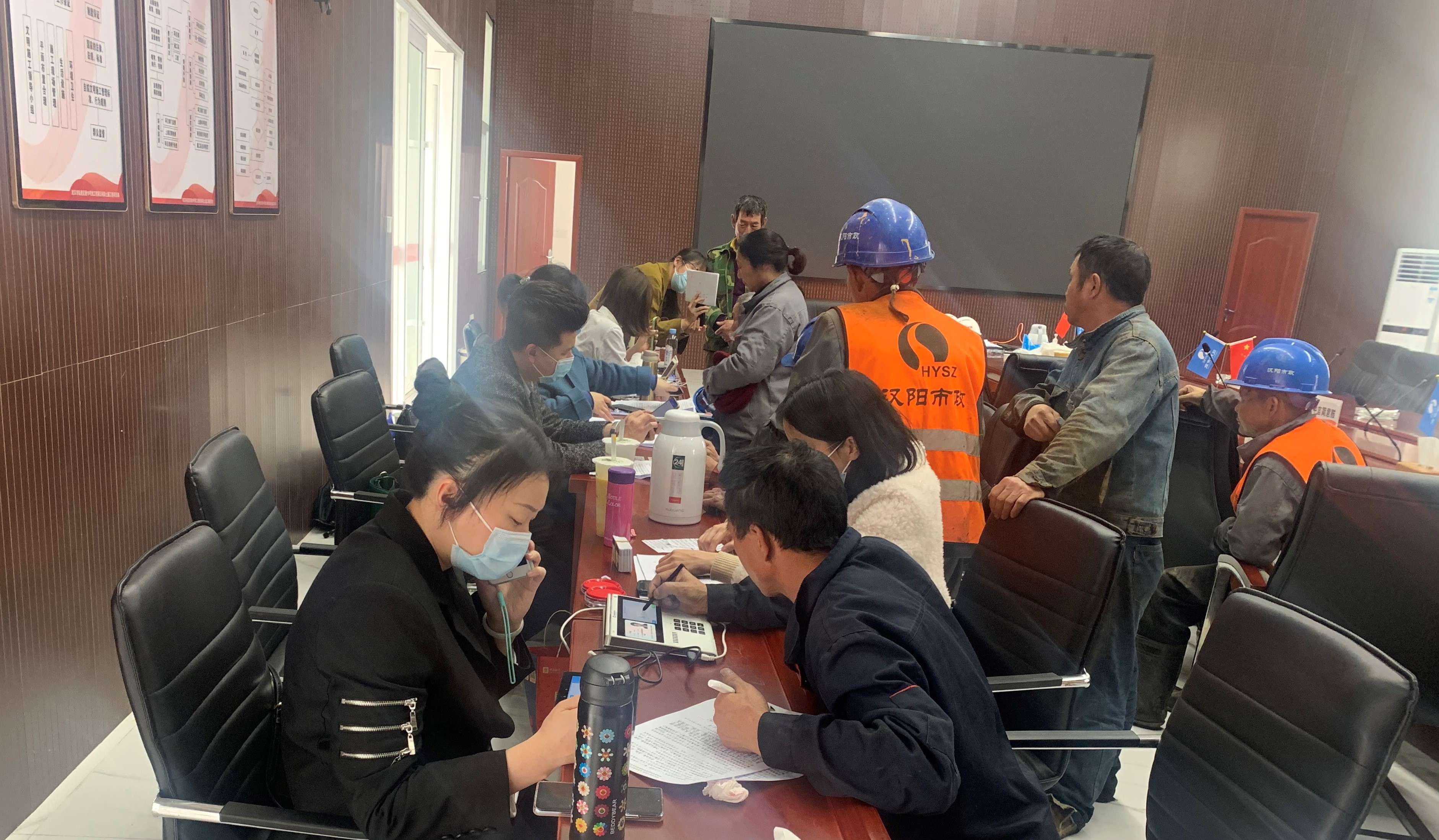 為規(guī)范農(nóng)民工工資支付行為,保障農(nóng)民工按時足額獲得工資報酬,2019年12月4日,國務院第73次常務會議通過了《保障農(nóng)民工工資支付條例》(以下簡稱《條例》),2020年5月1日起施行。鐘鑫公司積極落實《條例》規(guī)定,堅決維護農(nóng)民工勞動報酬權益,開設農(nóng)民工專戶,進行農(nóng)民工工資代發(fā)。公司財務部于近日特邀請中國建設銀行漢陽支行副行長一行6人親臨19.5標項目部設立“暖心工地銀行”,為項目農(nóng)民工兄弟提供上門服務,集中辦理個人工資卡,力將以人為本的理念貫徹到基層。