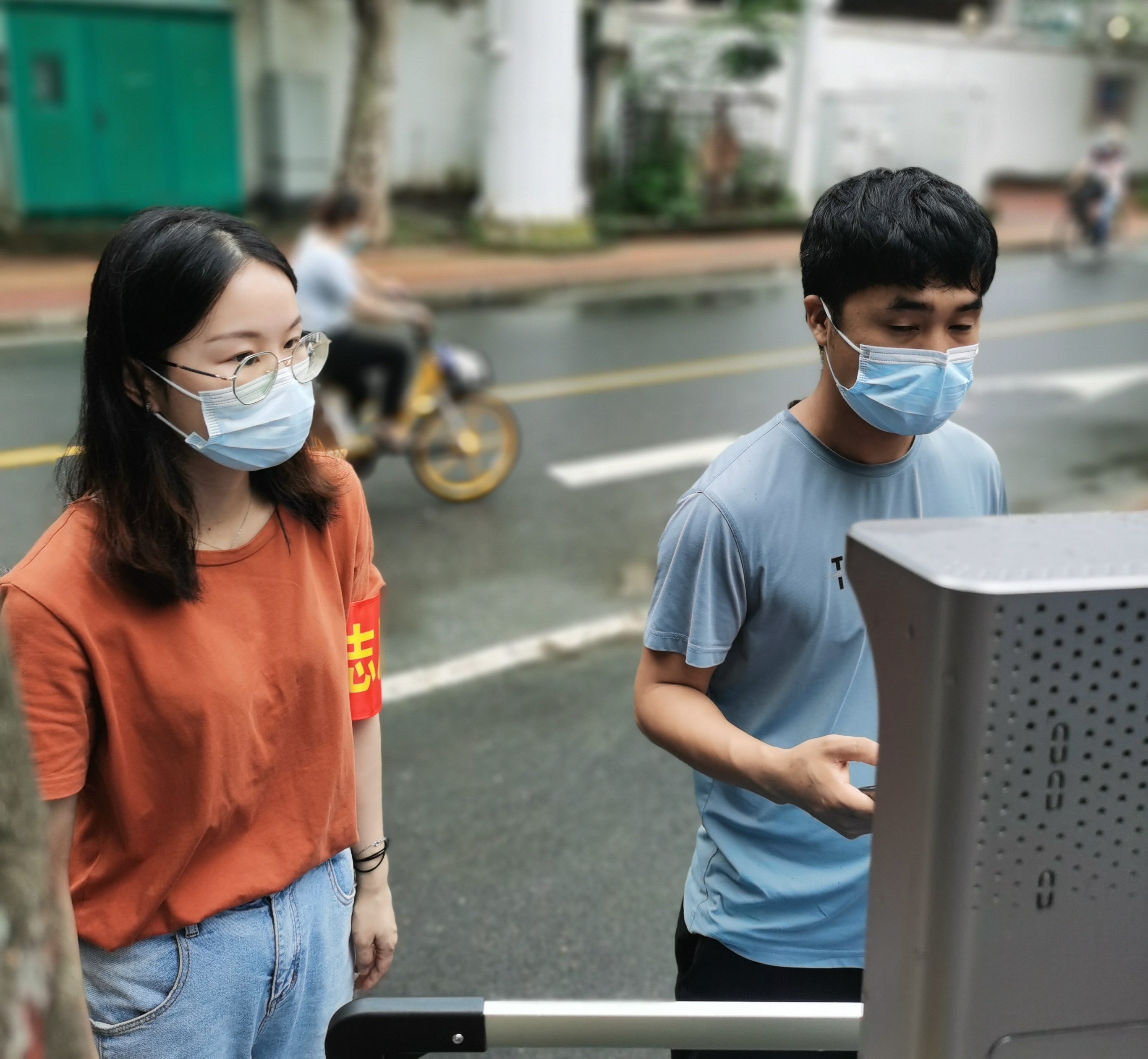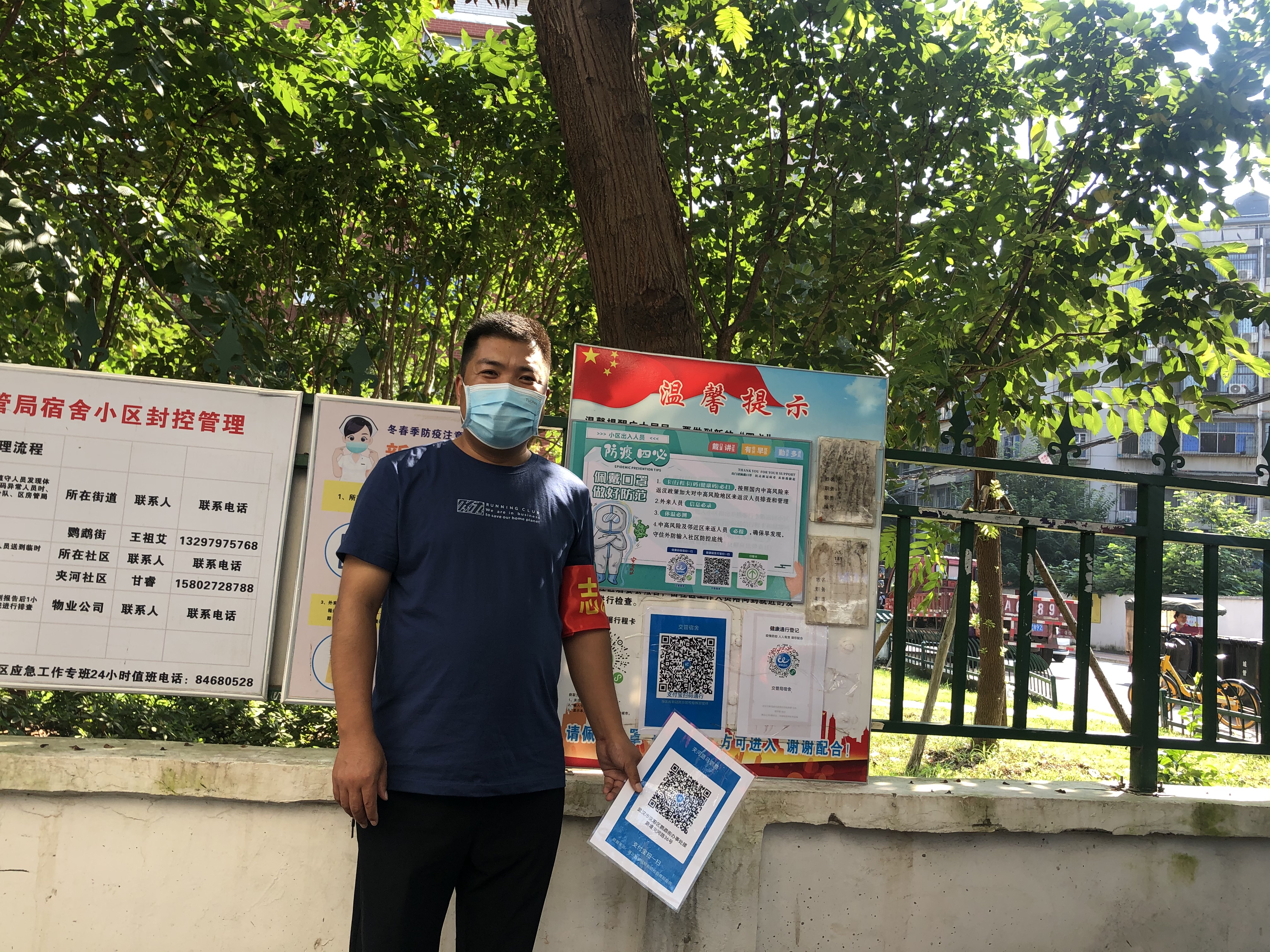 風(fēng)塵仆仆再戰(zhàn)社區(qū),剛從建設(shè)現(xiàn)場(chǎng)回到崗位的黨員李強(qiáng)、楊潔,立刻趕往社區(qū),力求在繁忙的工作之余能夠?yàn)樯鐓^(qū)貢獻(xiàn)自己力所能及的力量。烈日炎炎下,他們嚴(yán)格要求進(jìn)入小區(qū)的人員必須持健康碼,守好疫情防控的第一道關(guān)口。