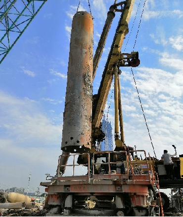 (2)研發(fā)了臨江富水地層基礎(chǔ)施工關(guān)鍵技術(shù),解決了灌注樁樁頭靜態(tài)破除、長螺旋鉆機自動清土等施工難題,提高了基礎(chǔ)施工效率,踐行了綠色施工理念。