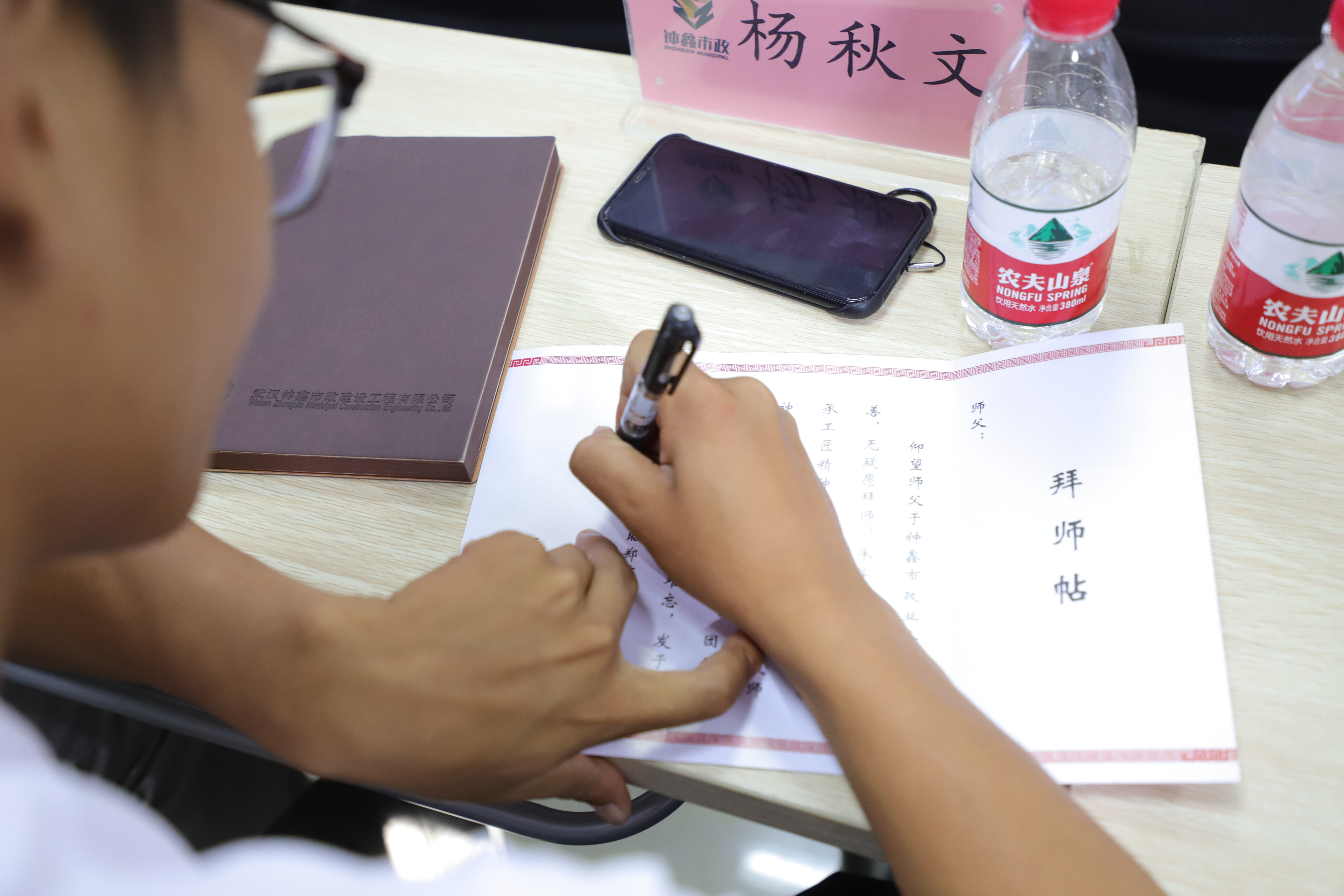 全體師徒進(jìn)行鄭重宣誓。新員工將以師父為榜樣,虛心求教,積極進(jìn)取,認(rèn)真學(xué)習(xí),尊重師父,用心聆聽師父的諄諄教導(dǎo),不辜負(fù)師父的教導(dǎo)和寄托,提高自己的能力,升華自己的人生價值,為鐘鑫公司的美好未來,奉獻(xiàn)一切!作為新員工的師父,在工作中將毫無保留與徒弟們交流工作經(jīng)驗(yàn),在徒弟們遇到困難時,及時給予真誠的關(guān)心和幫助,攜手前進(jìn),共同成長,共同創(chuàng)造鐘鑫公司的美好未來!