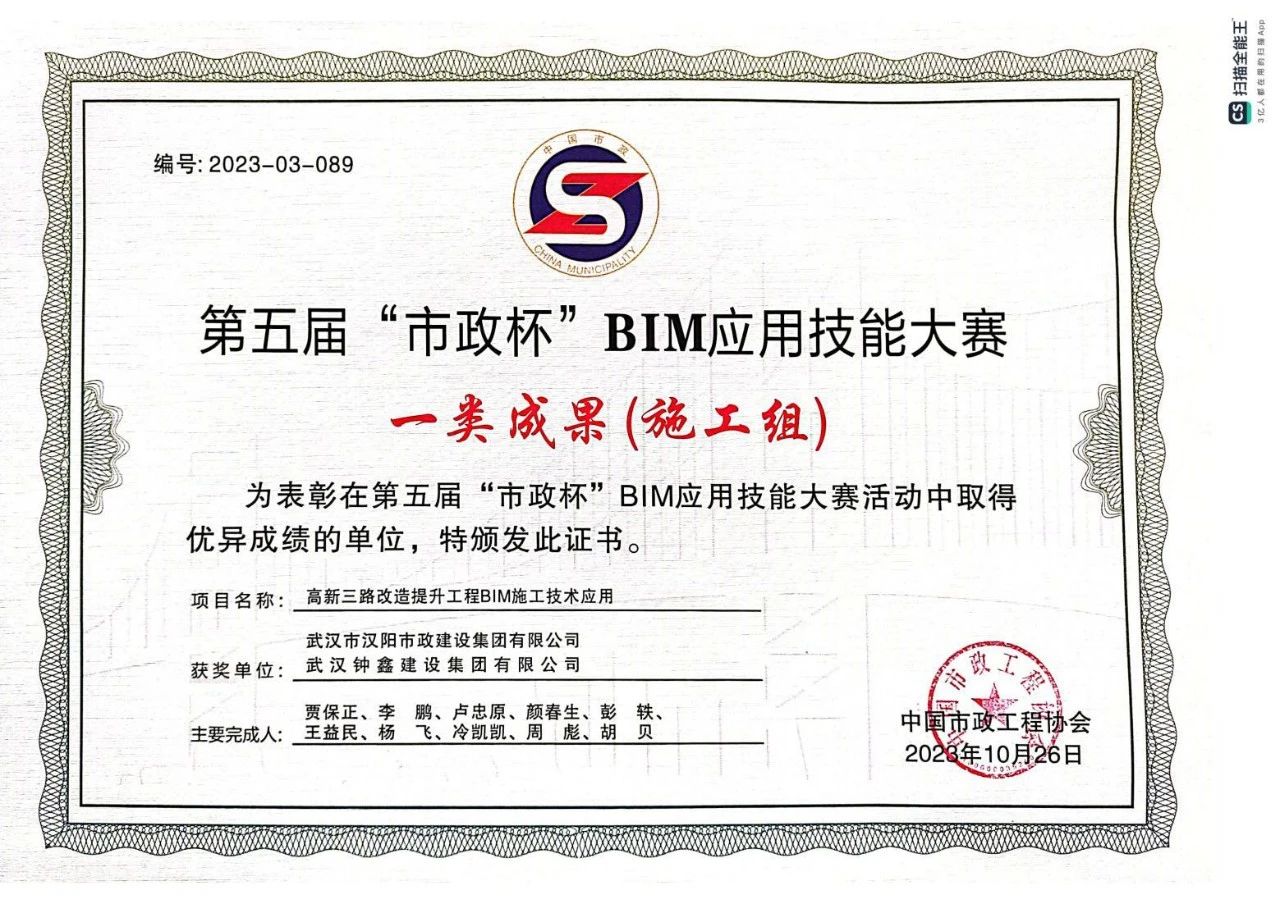 11月9日,中國(guó)市政工程協(xié)會(huì)在廣東省佛山市舉辦2023年中國(guó)市政工程協(xié)會(huì)年會(huì),會(huì)議對(duì)第五屆“市政杯”BIM應(yīng)用技能大賽的獲獎(jiǎng)成果進(jìn)行了表彰。由集團(tuán)和公司共同申報(bào)的《高新三路改造提升工程BIM施工技術(shù)應(yīng)用》經(jīng)過(guò)專家組初審、初評(píng)、答辯終評(píng)等既定評(píng)審程序,榮獲施工組一類成果獎(jiǎng)!