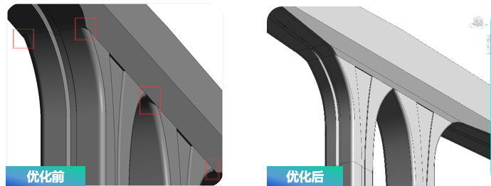 高新三路BIM技術(shù)團(tuán)隊(duì)對(duì)橋梁下部共22種類型的墩柱蓋梁設(shè)計(jì)圖以可視化的方式校核橋下凈空、管線碰撞、管線與結(jié)構(gòu)碰撞、管線排布等設(shè)計(jì)問(wèn)題,確保初步設(shè)計(jì)方案的合理性。墩柱蓋梁原設(shè)計(jì)采用花瓶墩,橋梁排水管沿蓋梁及墩柱側(cè)面中心溜槽埋設(shè)。BIM建模發(fā)現(xiàn),墩柱及蓋梁銜接處線型過(guò)渡不順暢,進(jìn)行設(shè)計(jì)優(yōu)化。